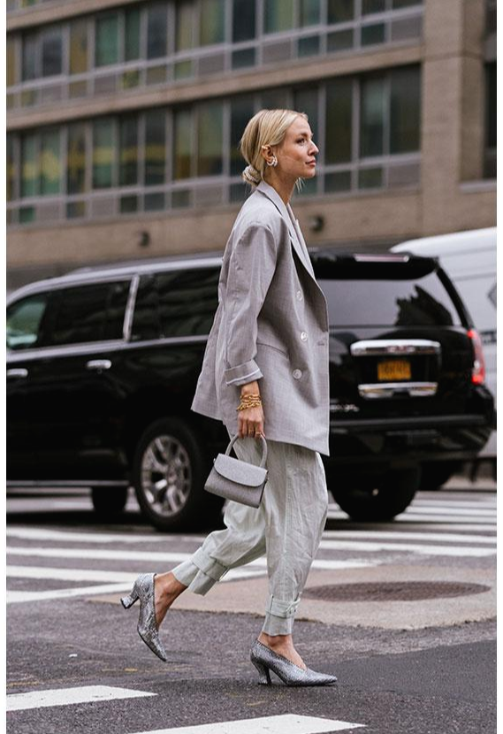 위 사진처럼 블레이저와 하의 핏 감을 통일!