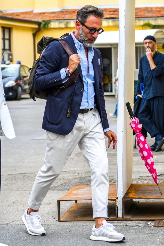 반대로 블레이저의 핏이 오버사이즈라면 하의도 거기에 맞추는 것입니다.