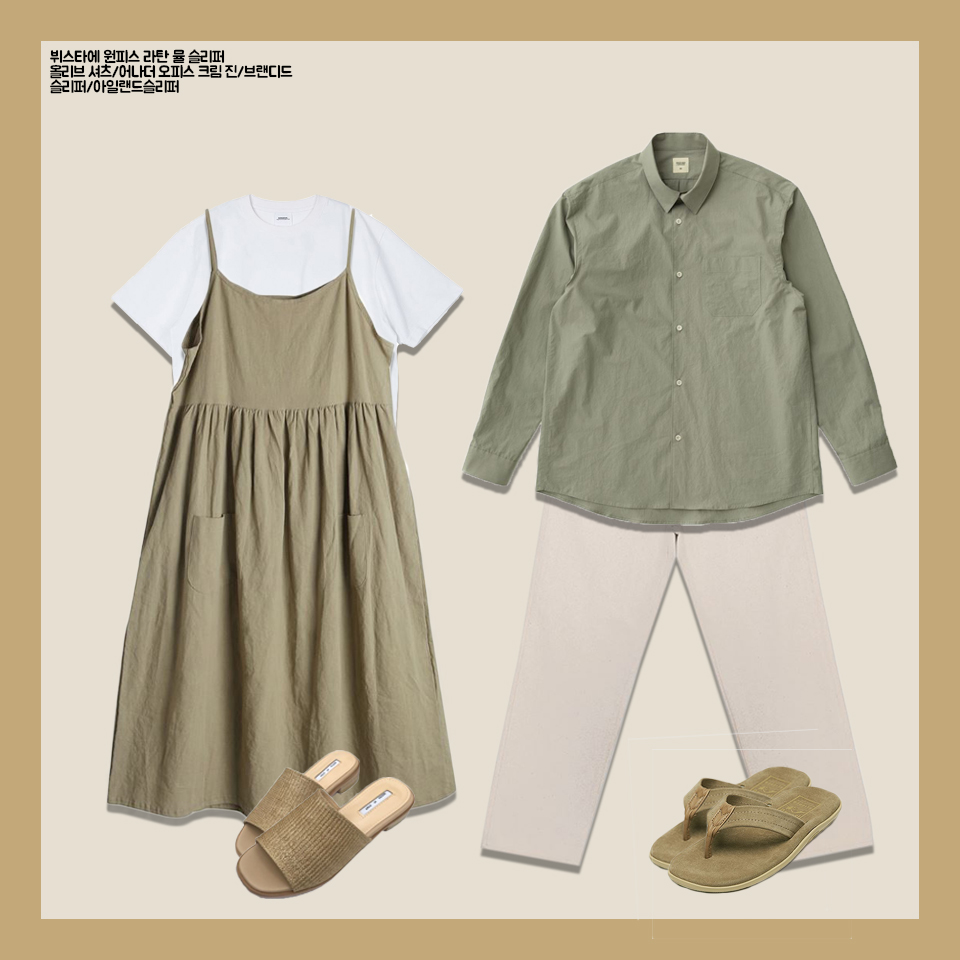 마지막은 여름에 입기 좋은 커플룩입니다.